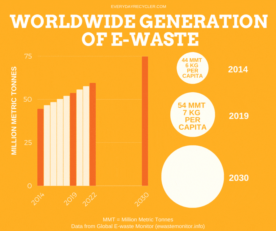 Unfortunately, in 2019 only 17.4% of this e-waste was collected and recycled, wasting US$57 billion of recoverable materials like gold, copper, and platinum.