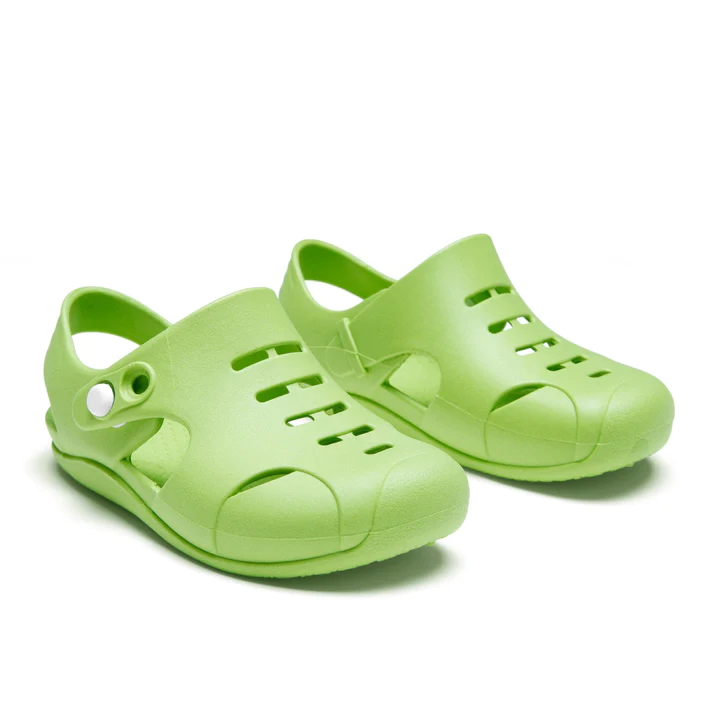 Their shoes and sandals contain an average of 25% recycled plastic. The recycled material gets mixed into a proprietary, recyclable material that is made with about 40% US-grown soy. It is classified as Vegan and is also BPA, latex, and phthalate-free.