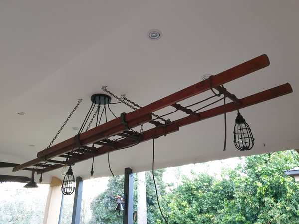 • My husband is repurposing an old ladder as a chandelier as we speak, see picture below.