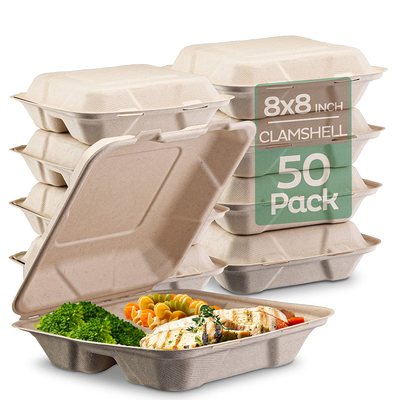 - Many companies are switching to recycled cardboard or compostable clamshells like the ones below. If your favorite takeaway brand has not made the switch, chat with them and let them know you want them to be more sustainable.