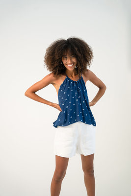 Or with a cute Milo+Nicki banana fabric dress such as the Indigo Fiesta Dress for a nighttime look.